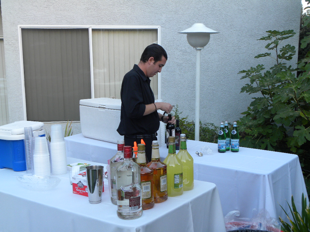 Shaken Not Stirred manned another successful back yard event last night – an engagement party in Chatsworth. Over 100 people attended the party and it seemed a great time was had by all. Although I wasn’t contracted to bring a barback, I brought my son, Willie, to train him. As it turned out I really needed him and he was a big help. I usually recommend having a barback or second bartender for parties over 100 people.