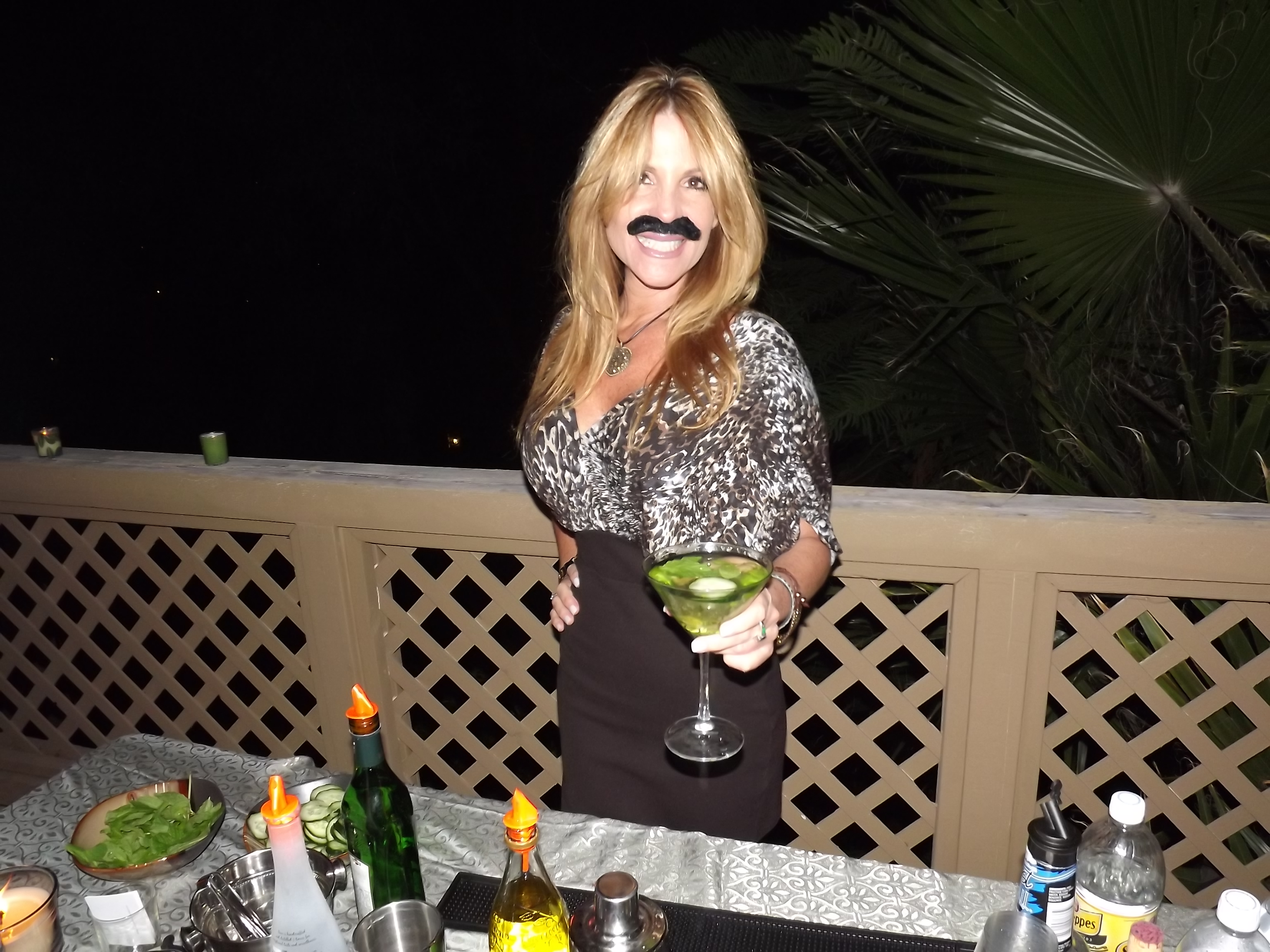 Last night, Shaken Not Stirred worked a birthday party in Laguna Niguel. The theme was “Mustaches and Martinis”. I have been getting a lot of calls to Orange County recently. The host had made a drink menu for the event, which included a Category 5 Cosmo (named after a category 5 hurricane), a Dirty Martini, and a Jalapeno Cucumber Martini. I had never made the cucumber martini before – it was a creation of the host and I think it was a hit. I muddled mint leaves and jalapenos in a shaker, then added a bit a simple syrup, cucumber infused vodka, Kettle One vodka, and then shook it up with ice and poured it over a cucumber slice. The result they told me was a little spicy, a little sweet, and a little strong.
