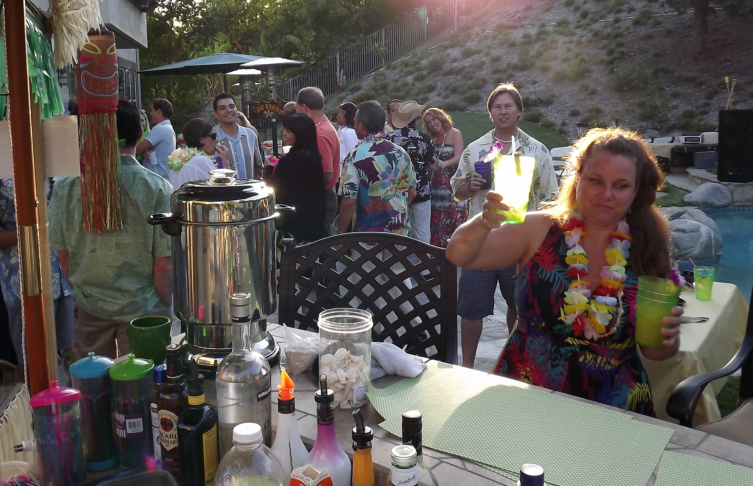 Friday night in Newberry Park in Ventura County was the scene of a man’s 50th birthday celebration and luau in honor of the occasion. The party was organized as a traditional luau and they roasted a pig, handed out leis, played Hawaiian music and I as the bartender served Mai Tai’s and Blue Hawaiian’s. Everyone was dressed for the occasion, including me.
