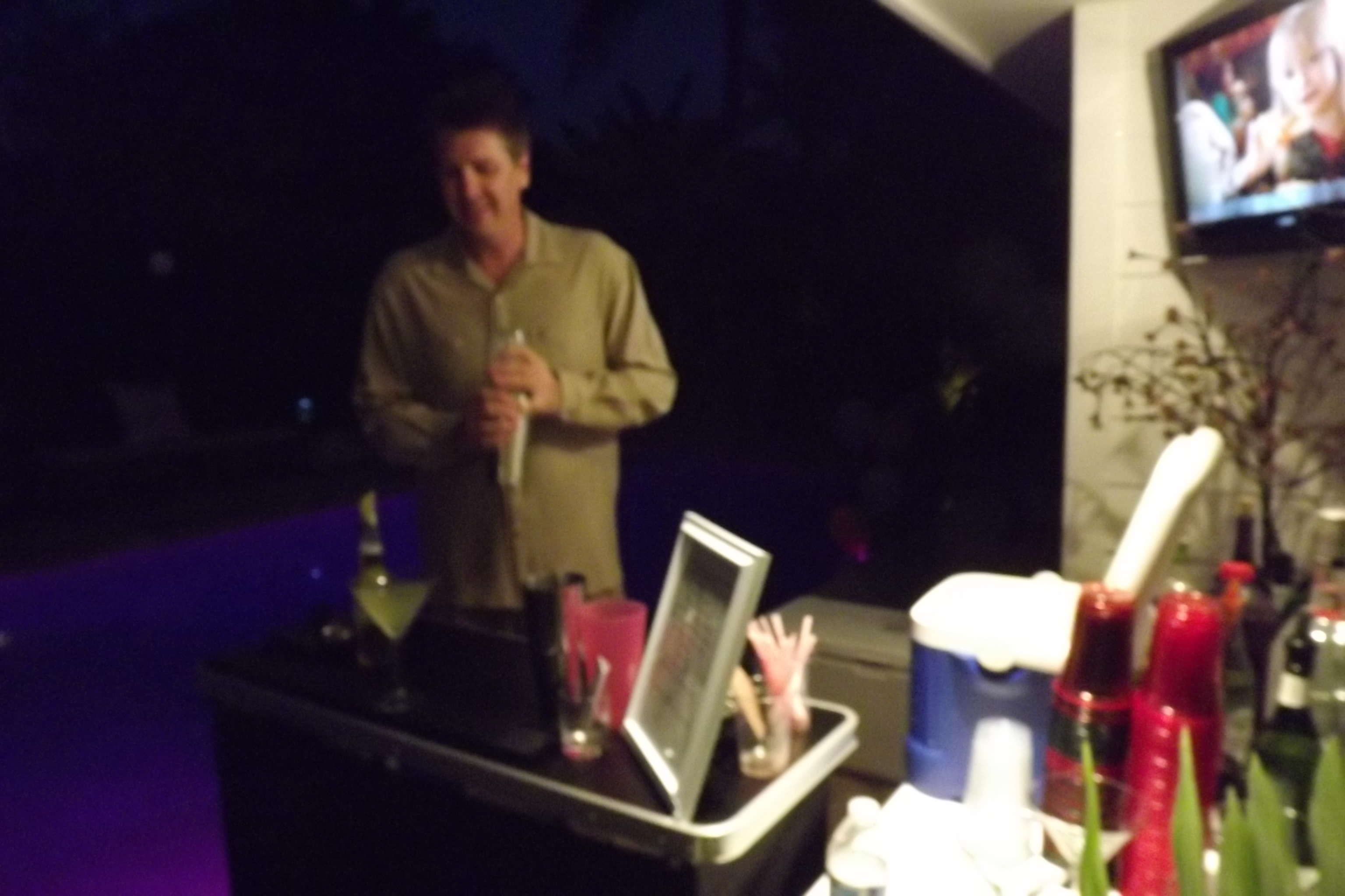 Sunday Shaken Not Stirred was present at a back yard graduation party in Newport Beach. It was a very nice home for entertaining and I set up my portable bar and table next to the pool. I was a little nervous I was going to fall in and I have done that before at a party, so it is a real concern. As it turns out, I didn’t fall into the pool, but some others did, but I will tell about that later.