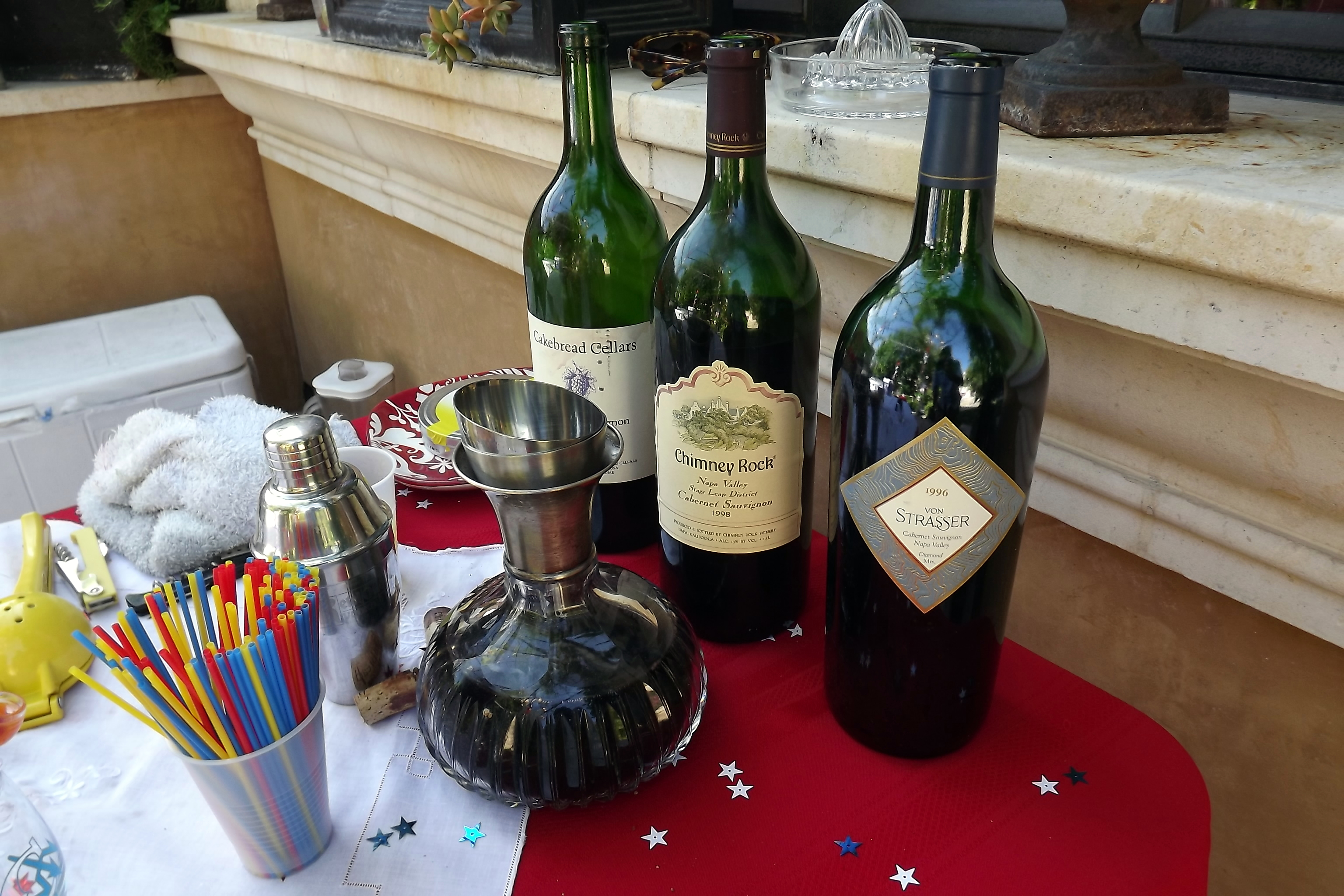 I served three nice vintage cabernets – a 93’ Cakebread, a 98’ Chimney Rock, and a 96’ Von Strasser. I don’t usually serve a lot of red wine at summer parties, but this crowd couldn’t resist these three excellent wines. They had fun tasting all three and comparing. The Von Strasser proved to be the crowd favorite. By the end of the party all three bottles were empty. I served a few martinis and made Lemon Drops using fresh lemon juice from lemons in my back yard. The party abruptly ended as the guests left to watch the fireworks. I got top see most of the show as I was driving out of there.