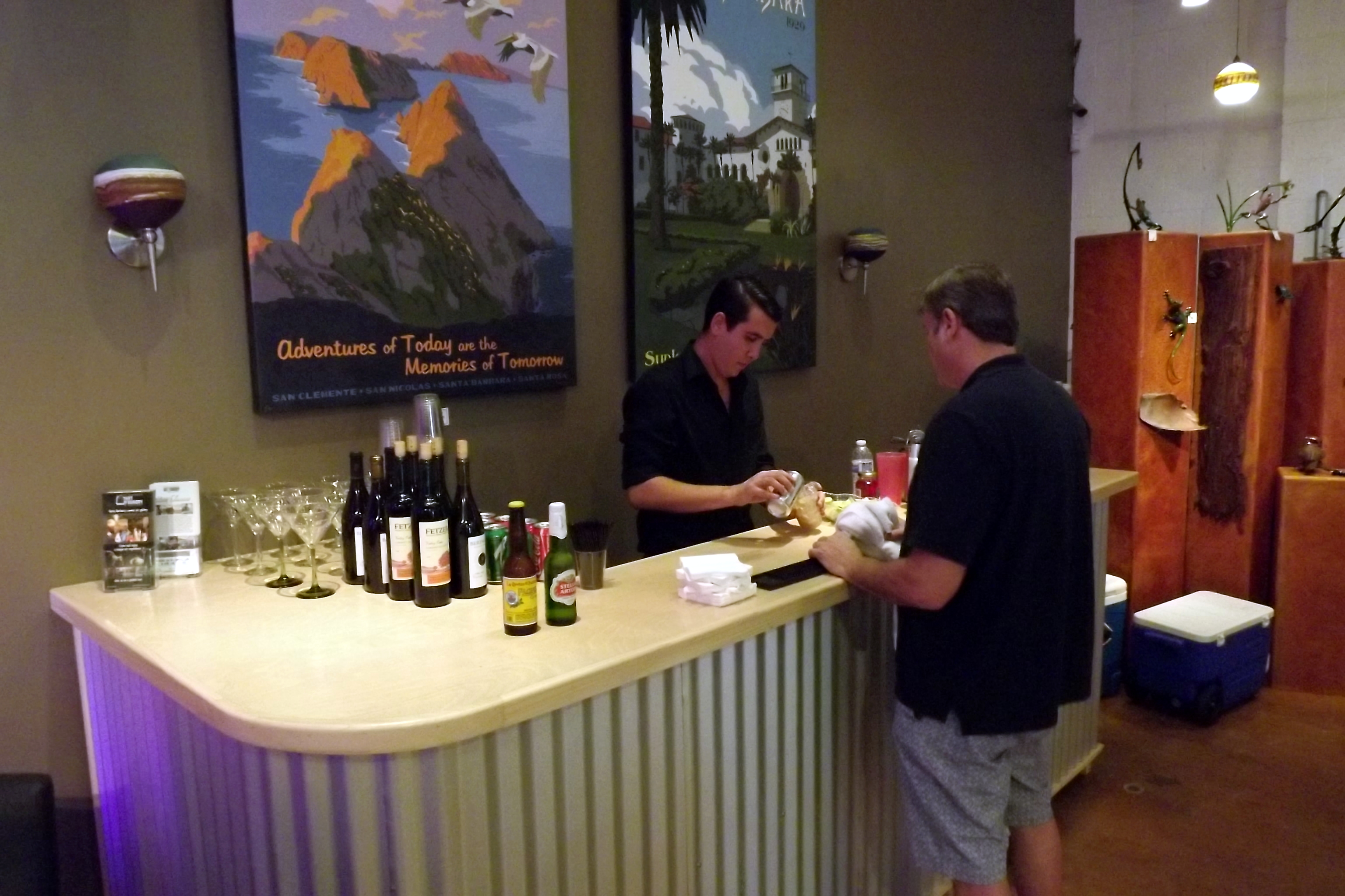 The Art Foundry is on Santa Barbara Street just a few blocks from the pier. It’s been years since I’ve been down to that area and it has transformed into a really cool area populated by hip restaurants, wine bars, and art galleries. I wish I would have taken some pictures because it really is picturesque. It was unusually hot for a beach community and must have been in the high eighties with no breeze at all when we arrived. It was sweltering inside the art gallery for most of the time we were bartending and we barely came up for air from the time we arrived until the last call.