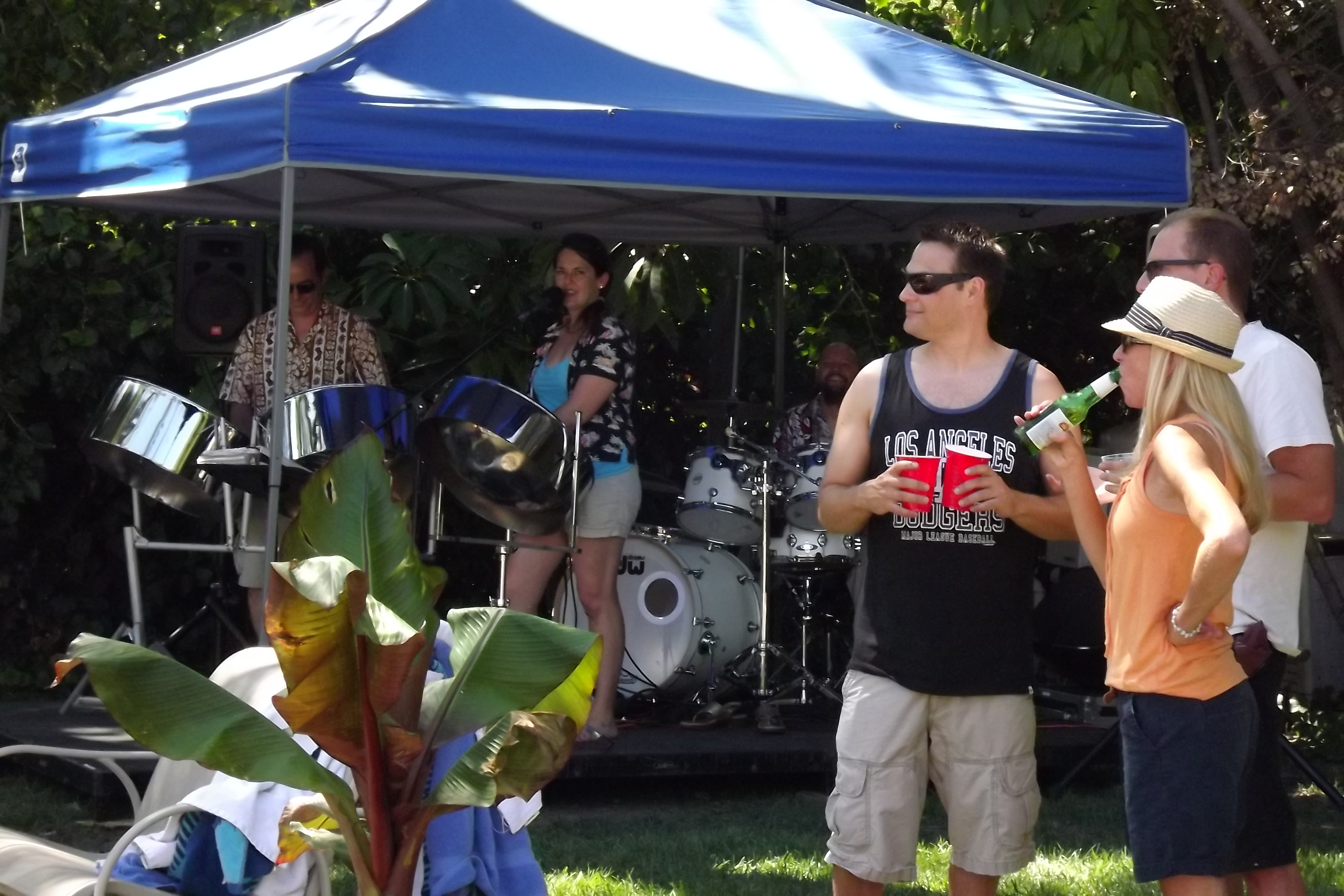 Nesta provided the entertainment with steel drums and I have seen them at other parties – they are great addition to any summer party. They had a taco bar set up in the front yard and I don’t know how the cooks kept from passing out it was so hot out there. The sun was just relentless. Another caterer was set up in the backyard and they kept passing around appetizers including shrimp cocktails, and then prepared a nice lasagna dinner. Everyone was well fed and we never ran out of drinks.
