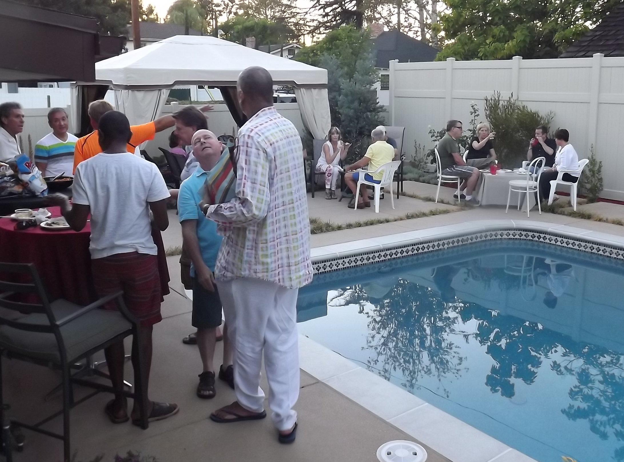 The sun finally went down and there was some relief from the heat. Some of the guests brought their swimming trunks and dove into the pool, turning the backyard party into a pool party. The host requested that I stay an hour longer than my scheduled time and I was glad to do it. I think it is foolish for a bartender to leave when a party is still going strong. I always stay later when requested and am glad to do so. When I schedule a party on a Saturday night, I have no other pressing business.