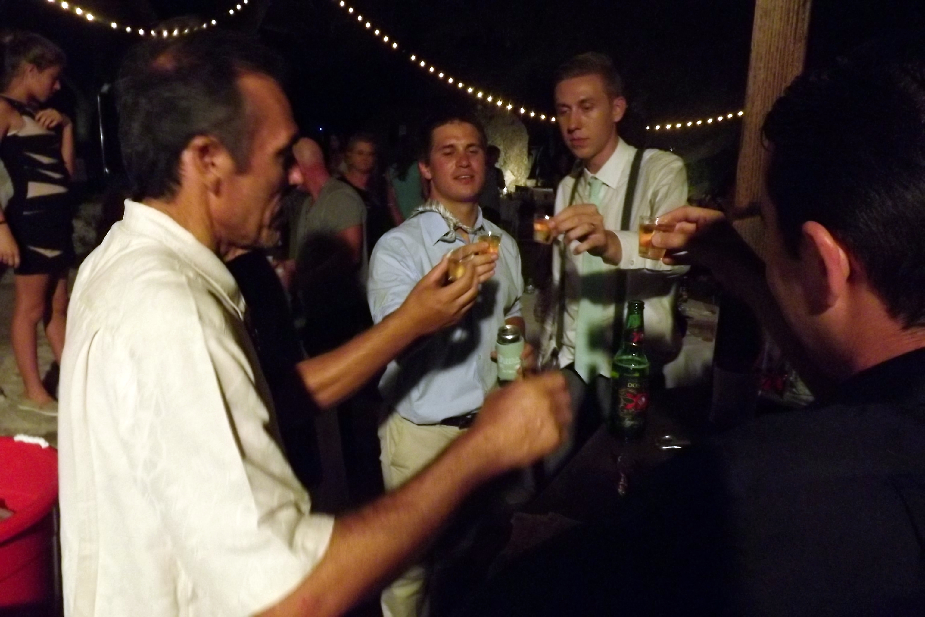 We served vodka drinks, margaritas, Jack Daniels, and Captain Morgan. They also had Budweiser, Shock Top, Dos Equis, 805 Ale, Stella, and Coors Light available for the guests. That was quite a beer selection and supply. They also served single serve Chardonnays, Merlots, and White Zinfindel wine by Copa. The bride wanted to charge people for the mixed drinks so people would not over drink. We charged $4 for mixed drink tickets and that worked out pretty well. They at least collected enough to pay the wedding bartenders.