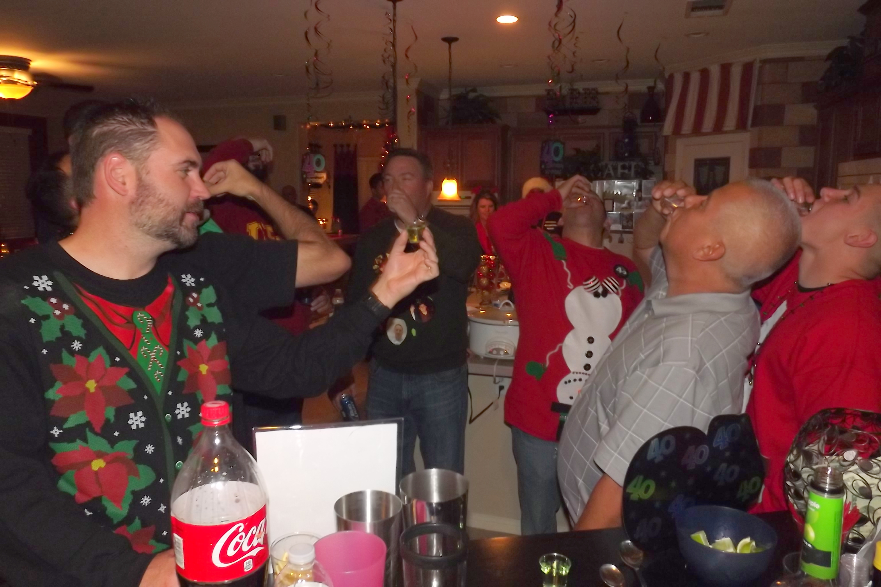 Last night Shaken Not Stirred traveled to Orange County to bartend a surprise 40th birthday party in Corona. The party also doubled as an ugly sweater party/holiday party. The birthday boy was told they were going to an ugly sweater party and had no idea that it was actually a surprise birthday party for him. It is always nice to see someone’s face when they are surprised with something like this. Whoever get a surprise birthday party thrown for them, is indeed a blessed person, because not everybody gets one.
