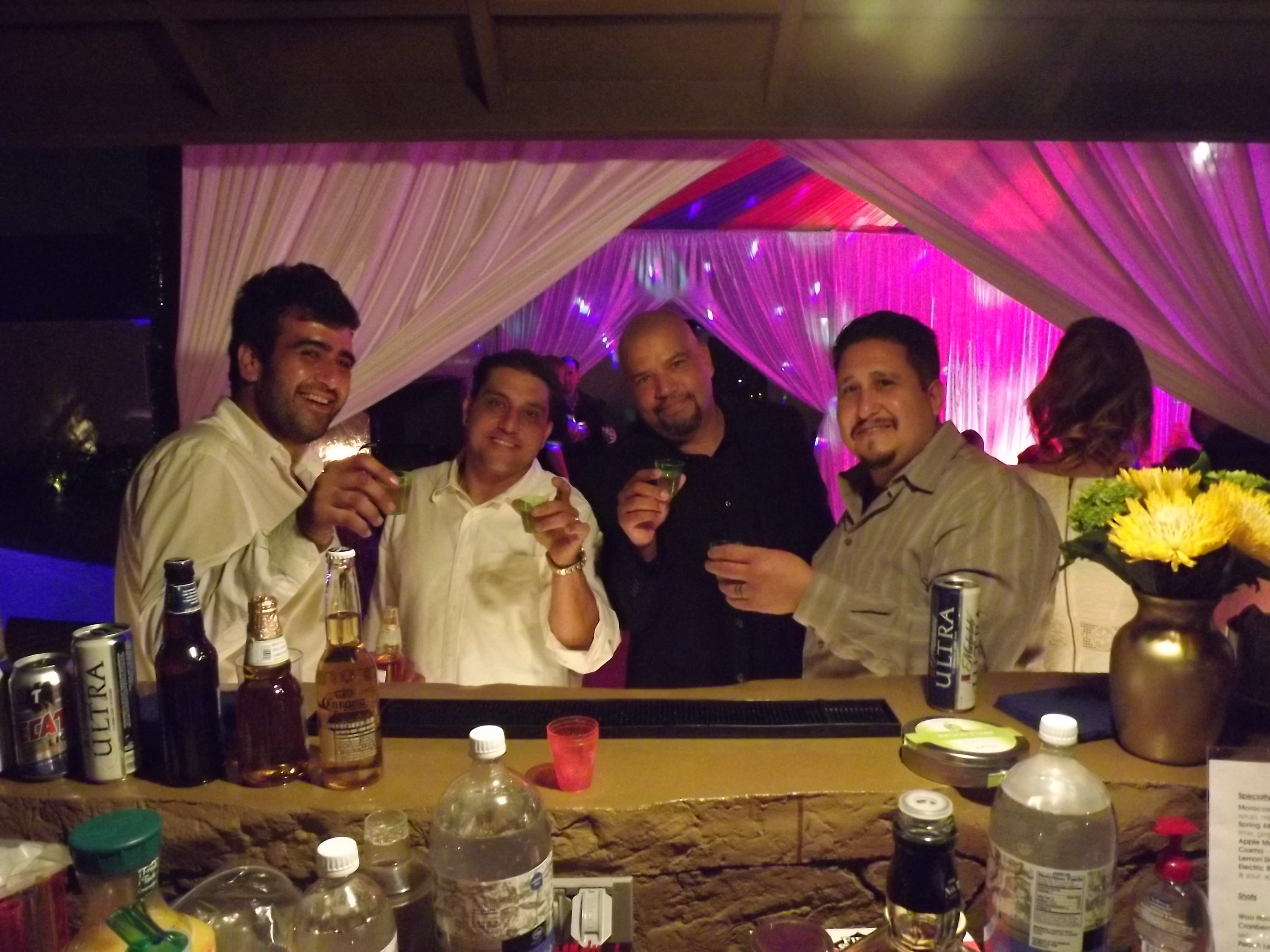 The DJ was Benny Boom, of the San Gabriel Valley (909) 767-9291. He passed my DJ test and gets to appear on this blog. He didn’t play YMCA, Happy, or the Cupid Shuffle. I think many DJ’s lack imagination and just play the same mix at every party. This DJ was above average in that respect and he really got the party going. By the end of the night the dance floor was full. The shots also helped in that respect.