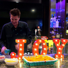On Sunday I returned to Villa Park in Orange County, to bartend for a repeat client. They have a very nice backyard bar and pool that is perfect for entertaining. The party was for Dad’s, sons, and daughters, and I believe it was a fundraiser for a school event. It was a very nice Southern California evening, and the kids took full advantage of the pool. Here it is nearly Christmas, and kids are still swimming outdoors. Rain came by the end of the party, but everyone seemed to have a great time. I Heart Momo provided the photo booth, which was very popular with the kids.
